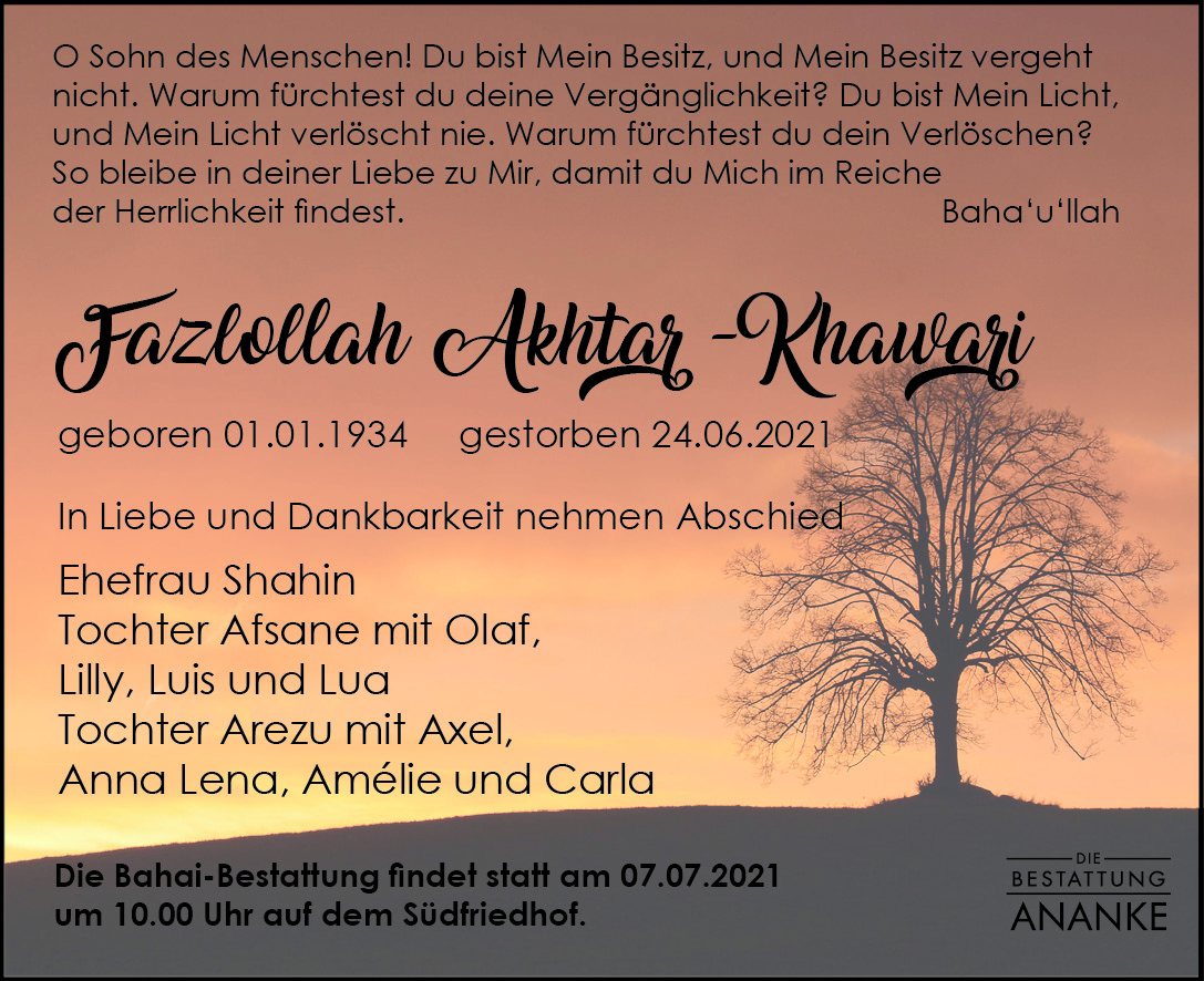 Gedenkseite - Akhtar-Khawari Fazlolla