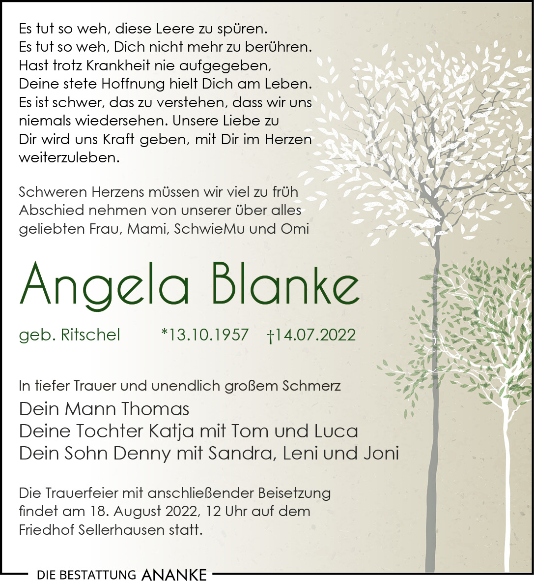 Gedenkseite - Angela Blanke