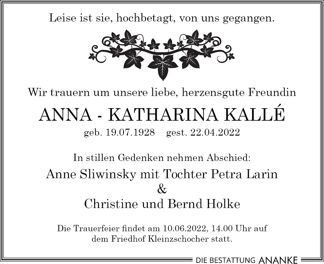 Gedenkseite - Anna-Katharina Kallé