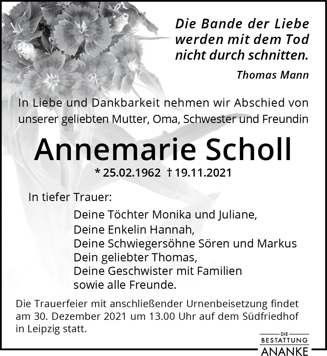 Gedenkseite - Annemarie Scholl