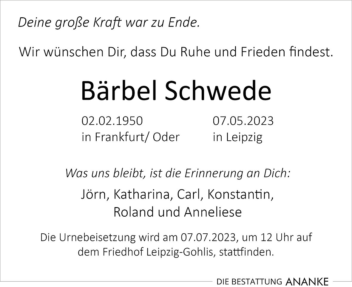 Gedenkseite - Bärbel Schwede