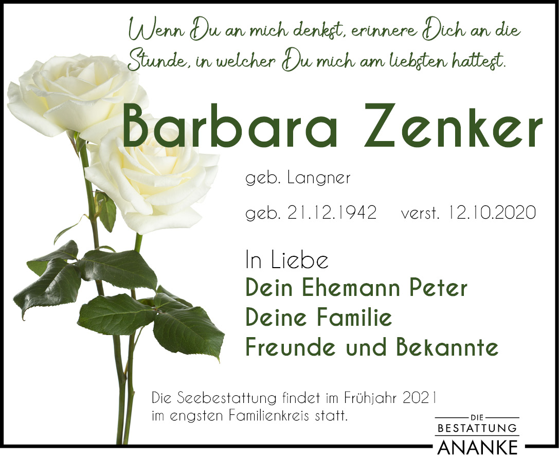 Gedenkseite - Barbara Zenker
