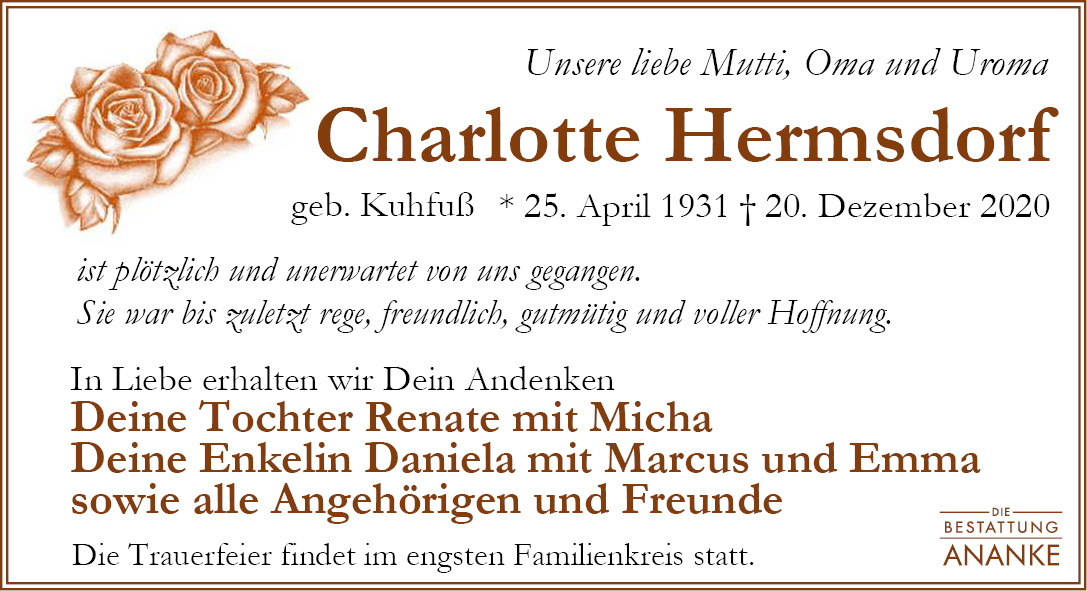 Gedenkseite - Charlotte Hermsdorf