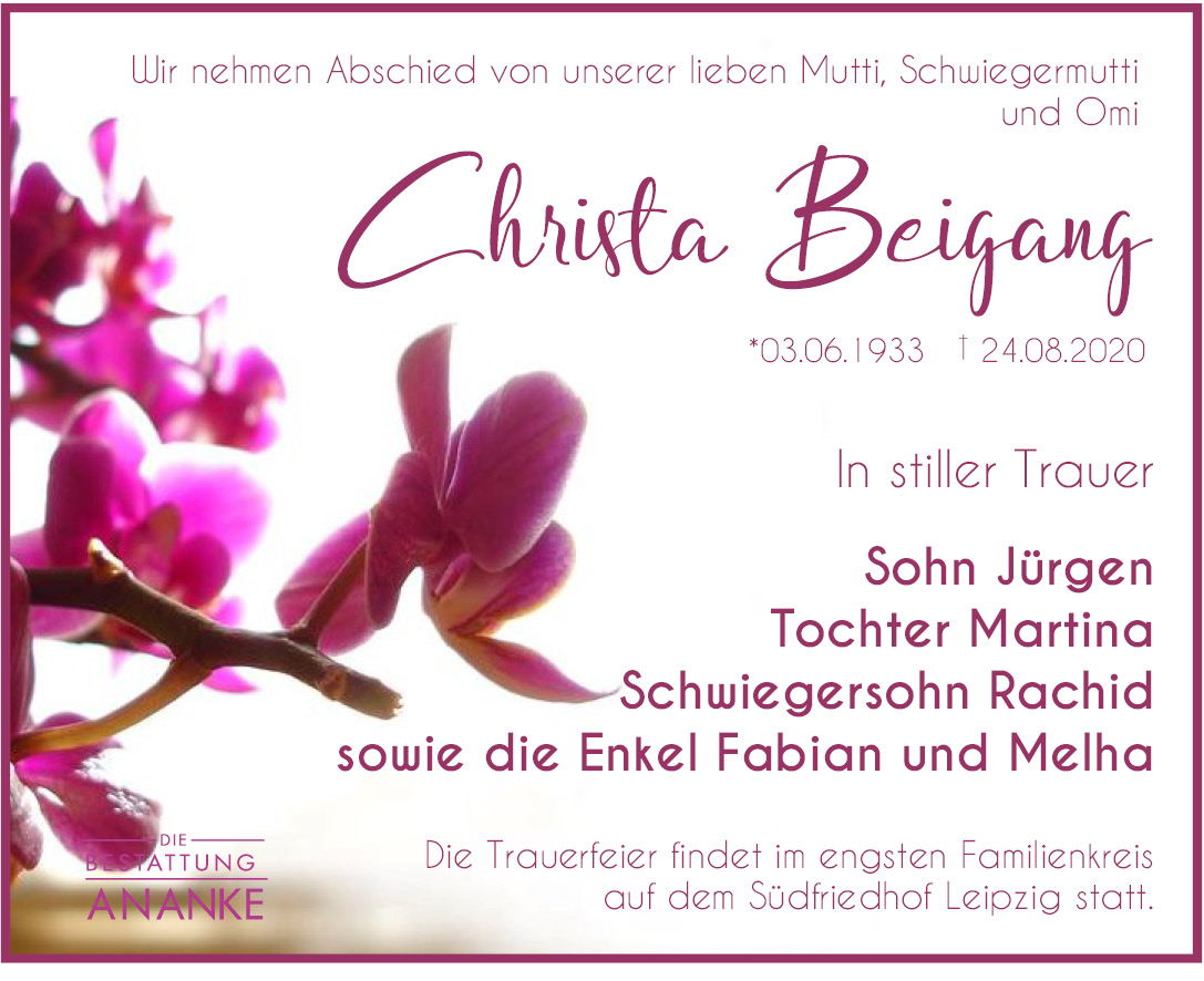 Gedenkseite - Christa Beigang