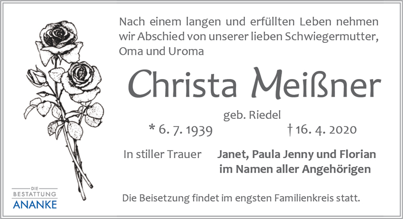 Gedenkseite - Christa Meißner