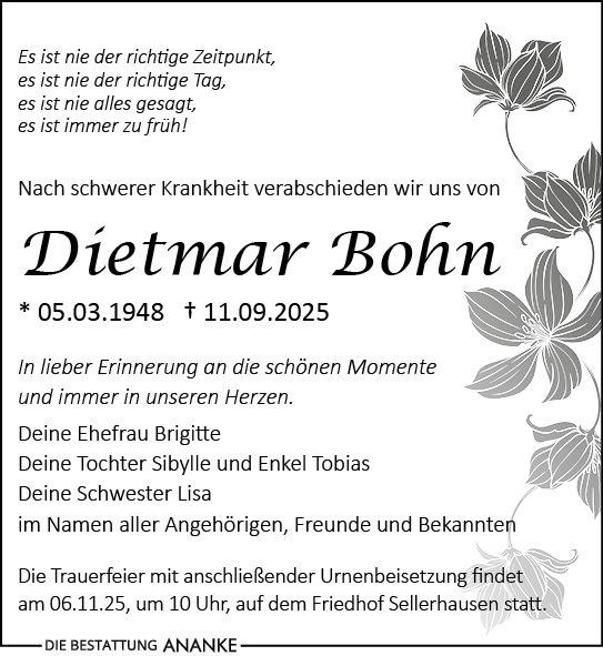 Gedenkseite - Dietmar Bohn