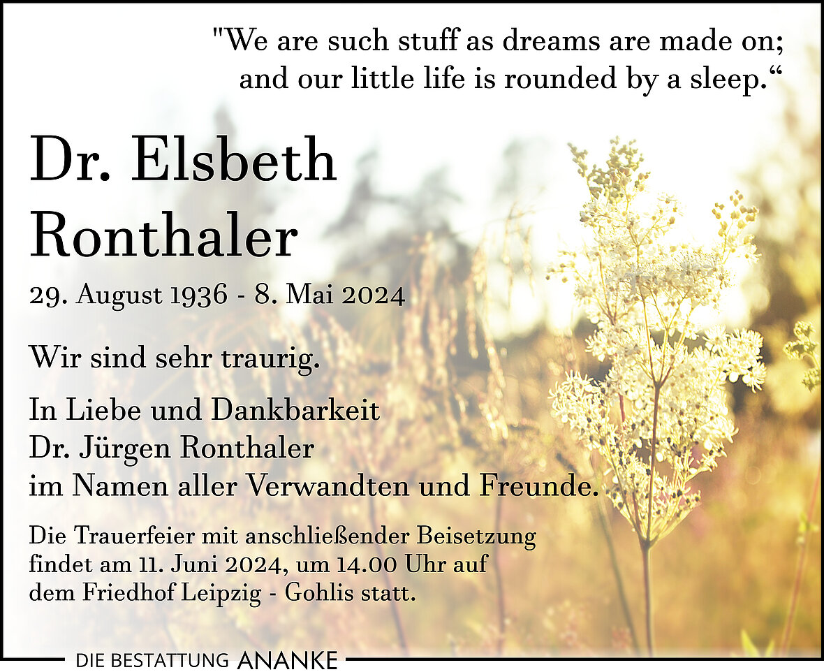 Gedenkseite - Dr. Elsbeth Ronthaler