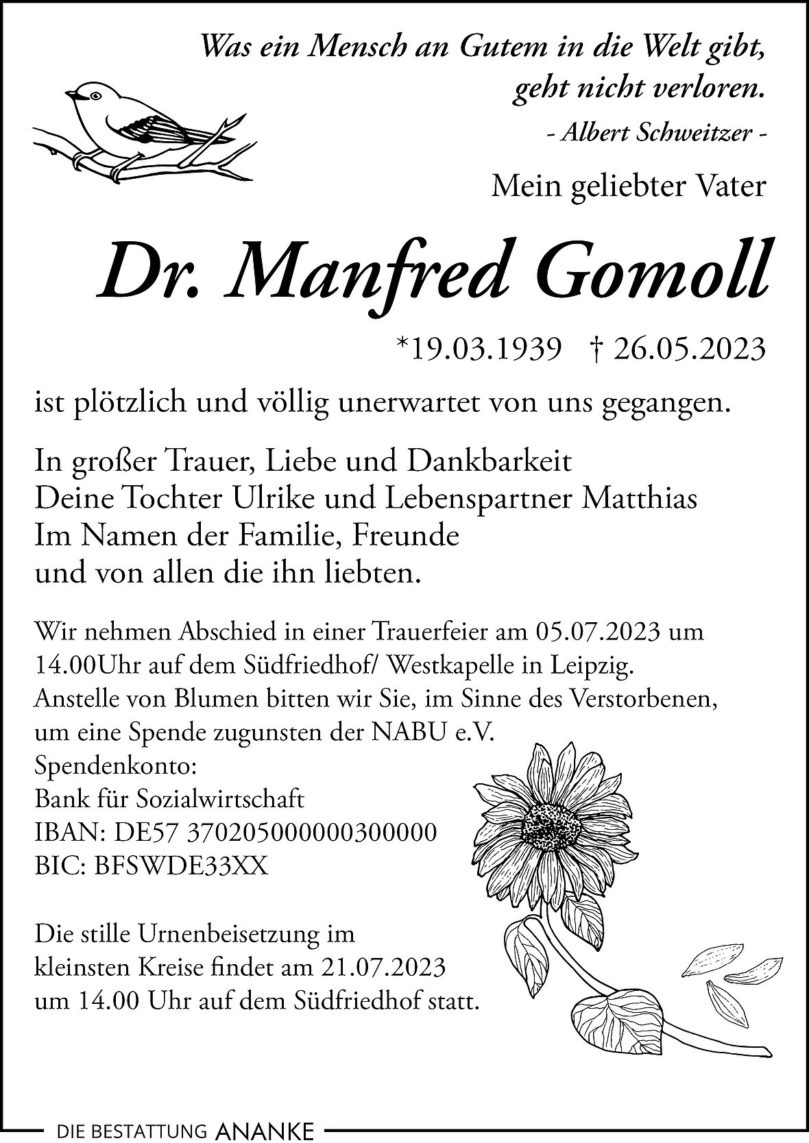 Gedenkseite - Dr. Manfred Gomoll