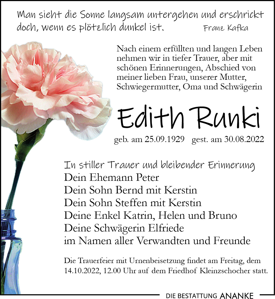 Gedenkseite - Edith Runki