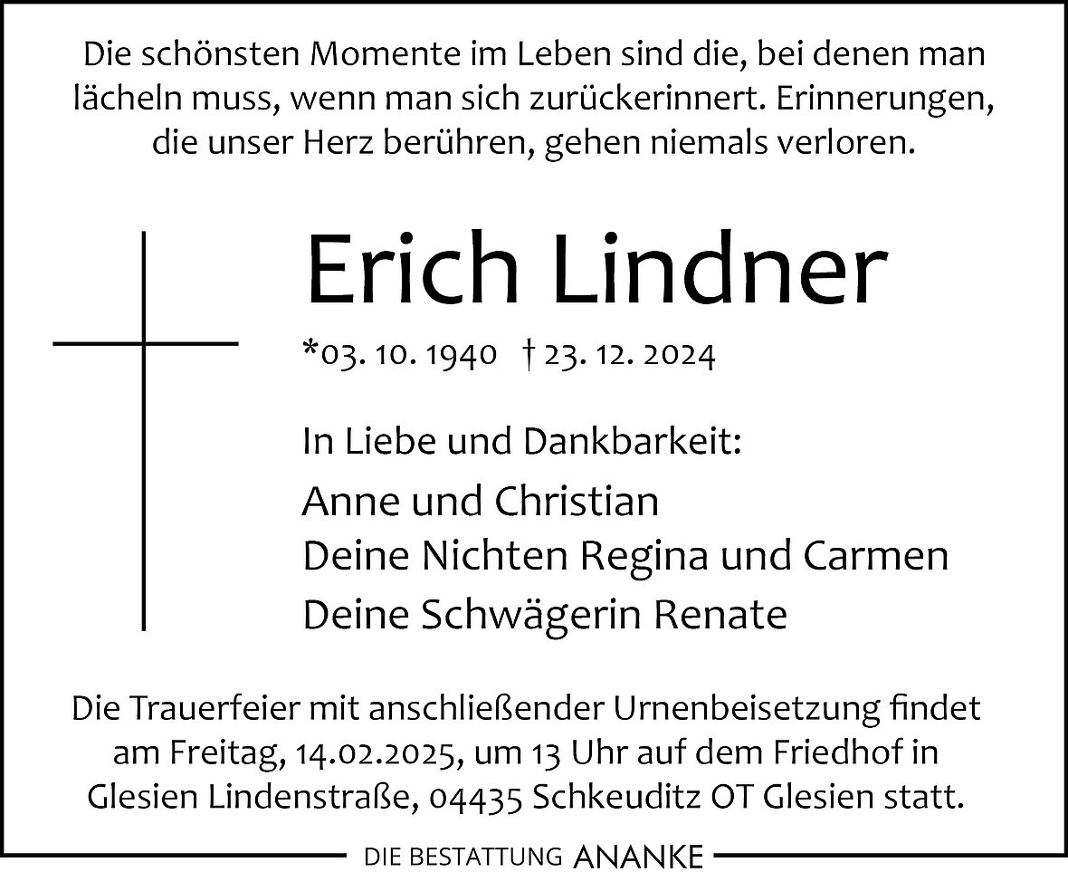 Gedenkseite - Erich Lindner