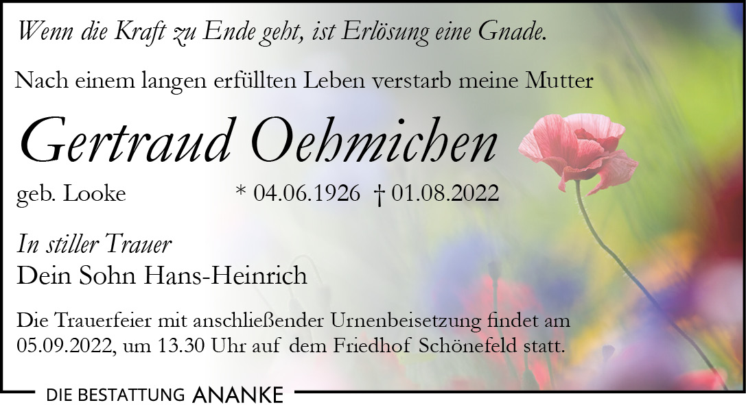 Gedenkseite - Gertraud Oehmichen