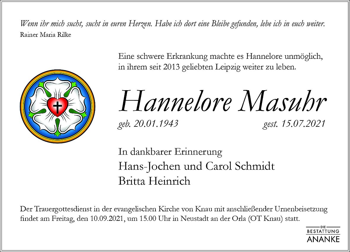 Gedenkseite - Hannelore Masuhr