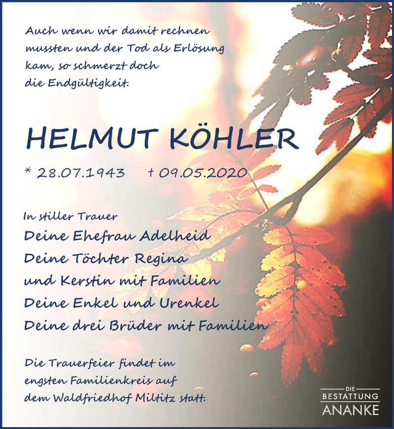 Gedenkseite - Helmut Köhler