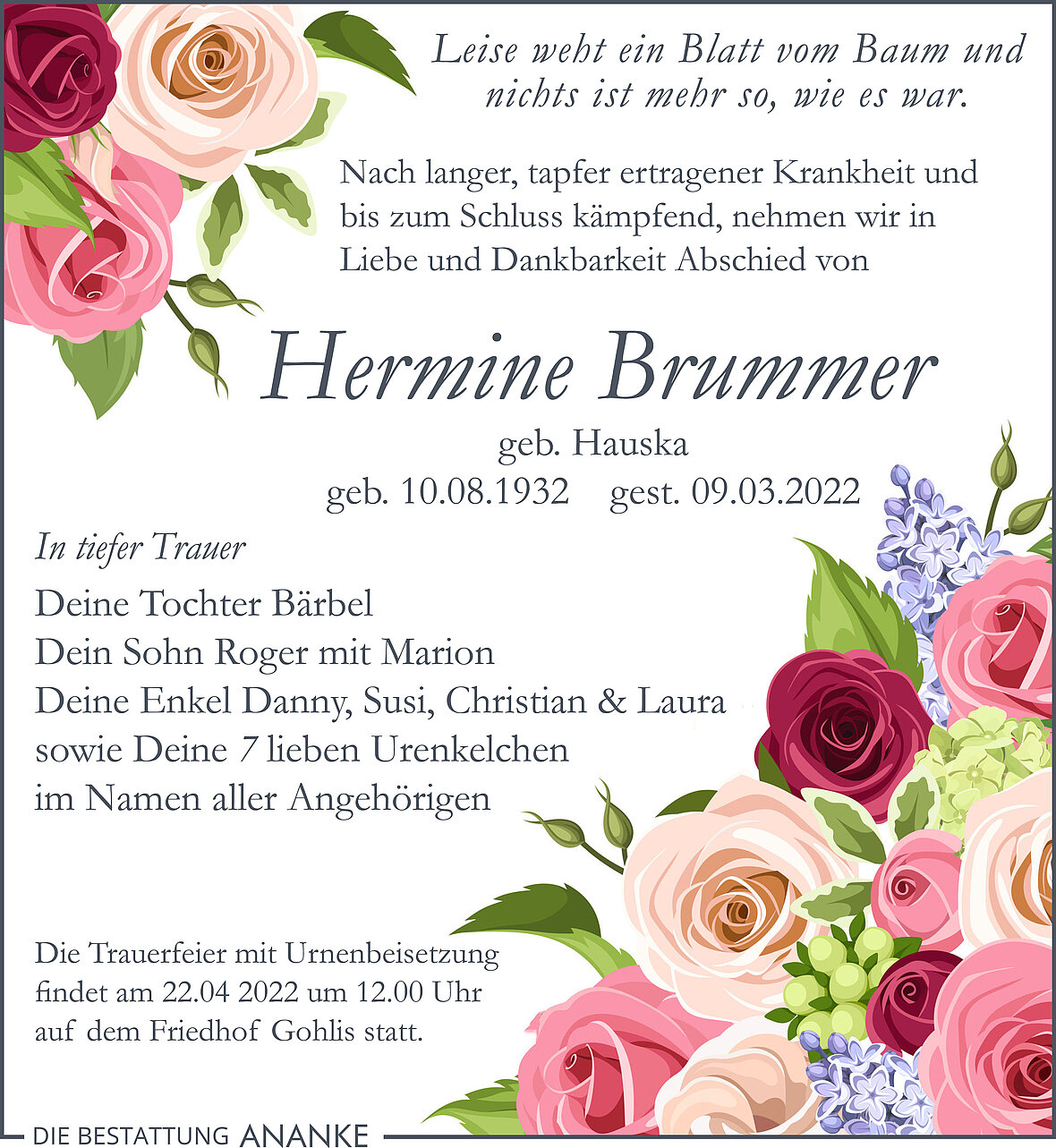 Gedenkseite - Hermine Brummer