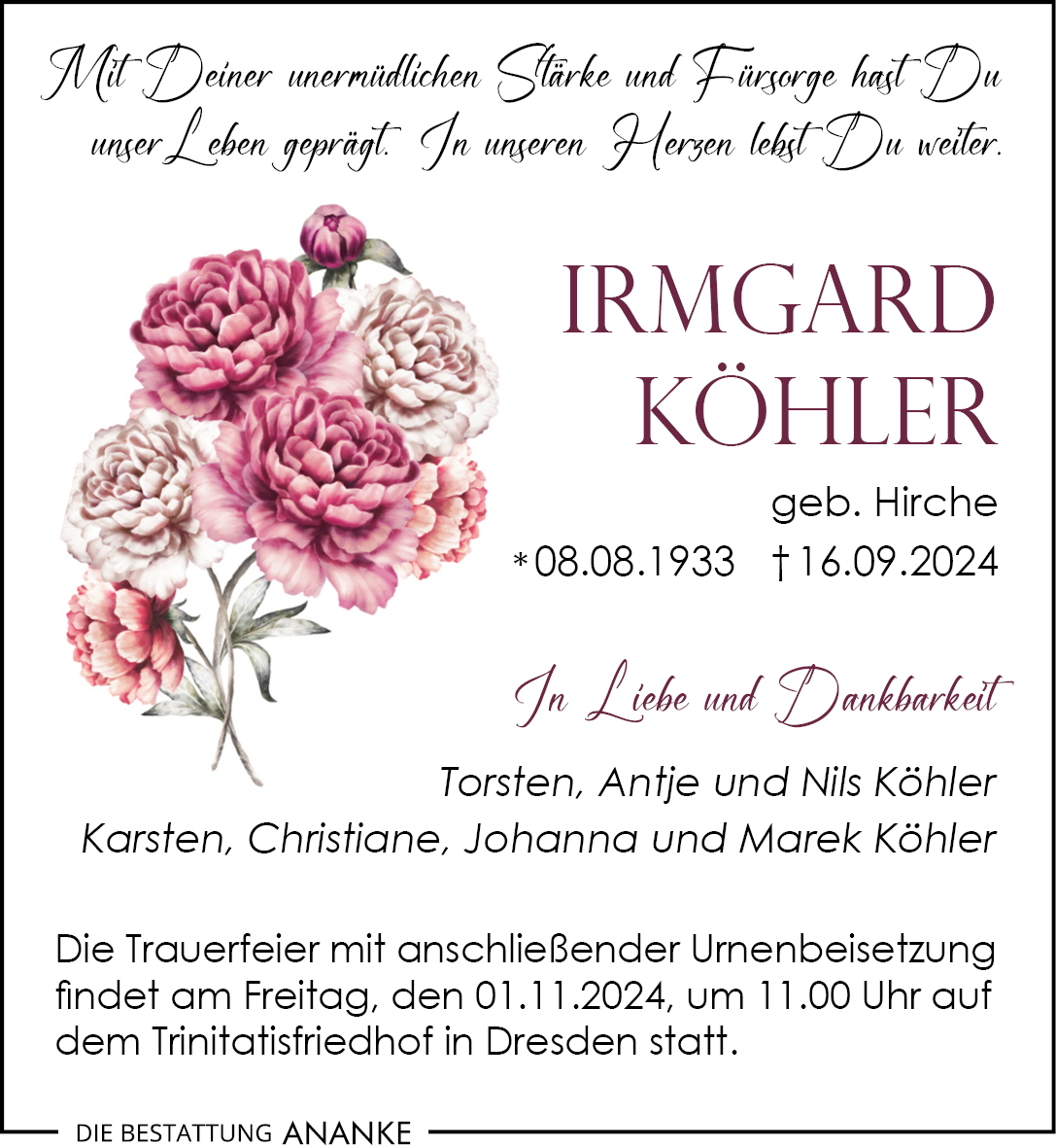Gedenkseite - Irmgard Köhler
