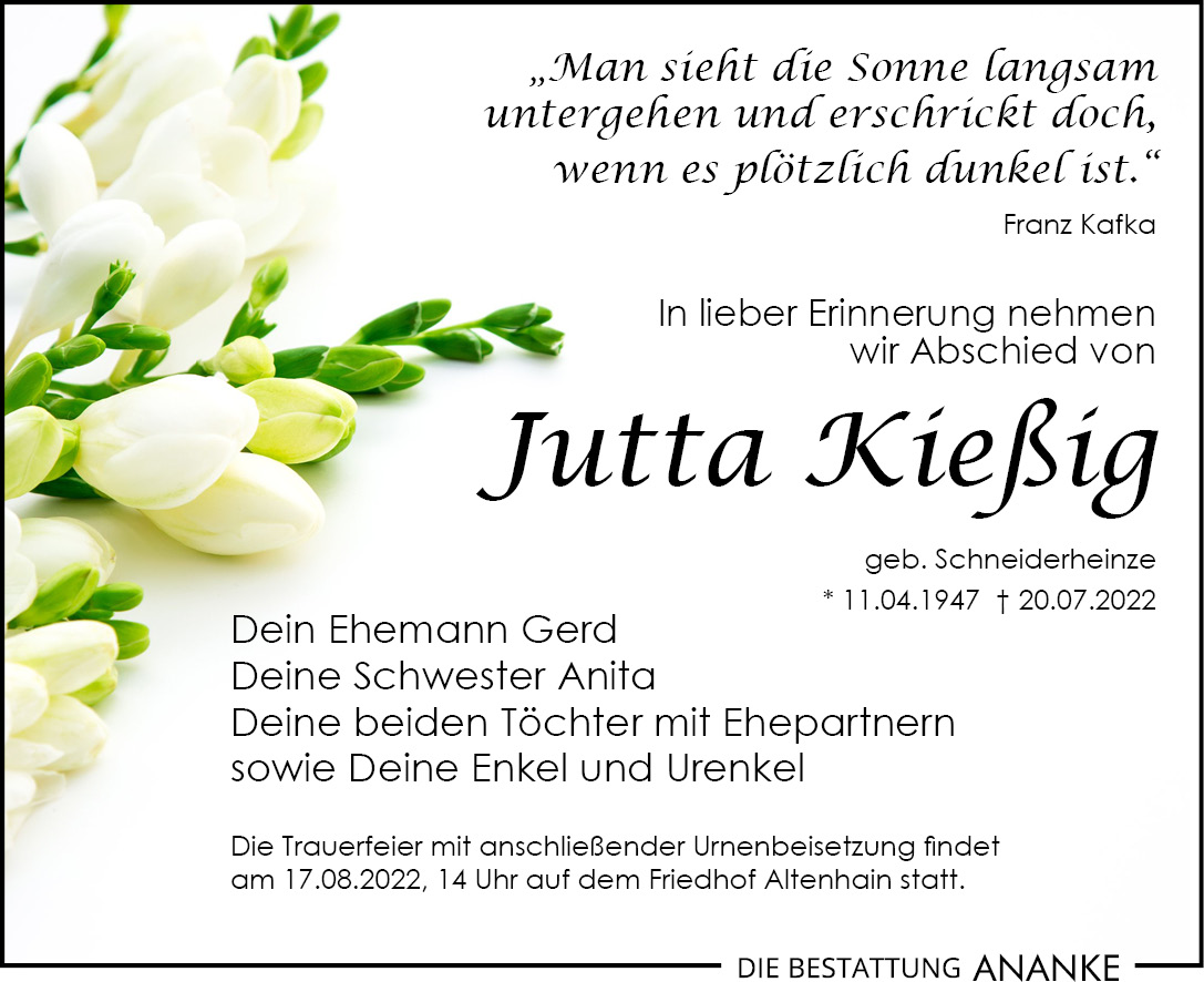 Gedenkseite - Jutta Kießig