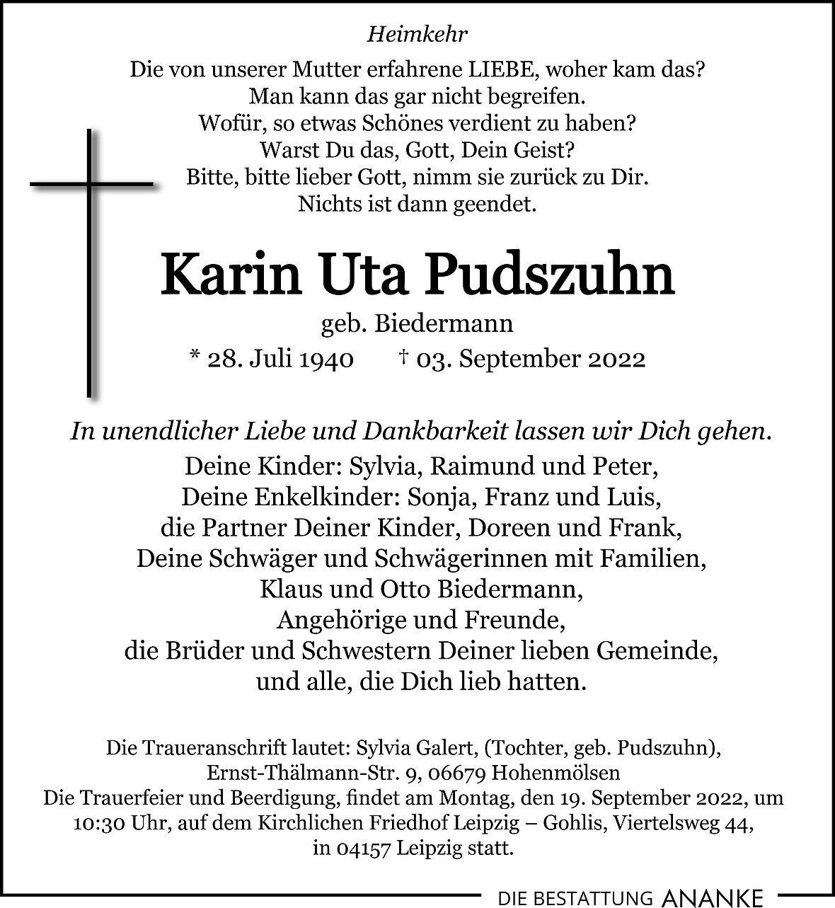 Gedenkseite - Karin Uta Pudszuhn
