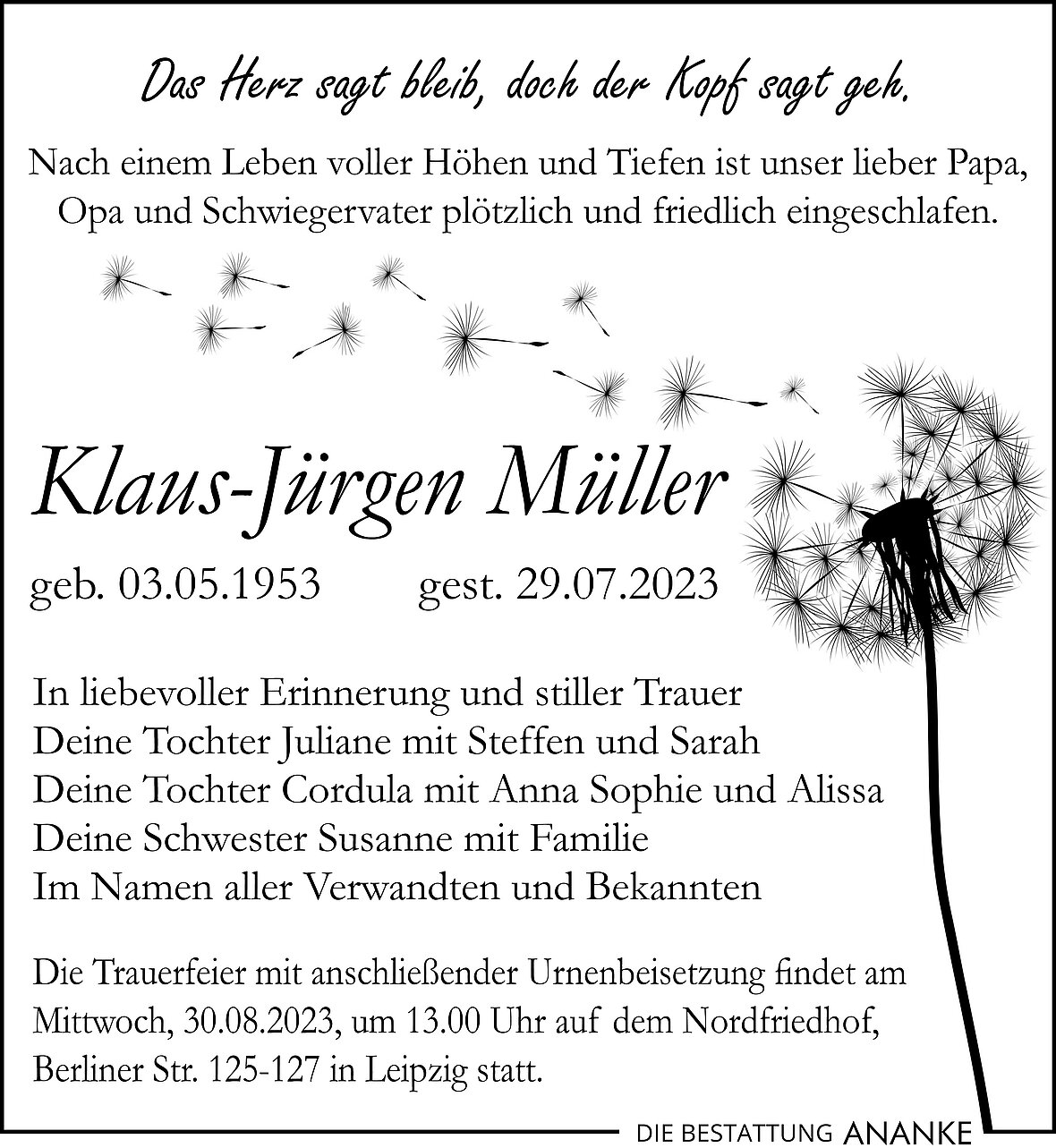 Es wurden noch keine Kondolenzen geschrieben.