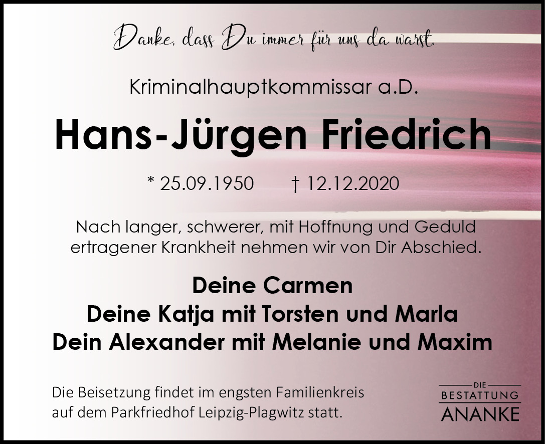 Gedenkseite - Kriminalhauptkommissar <br/> Hans-Jürgen Friedrich