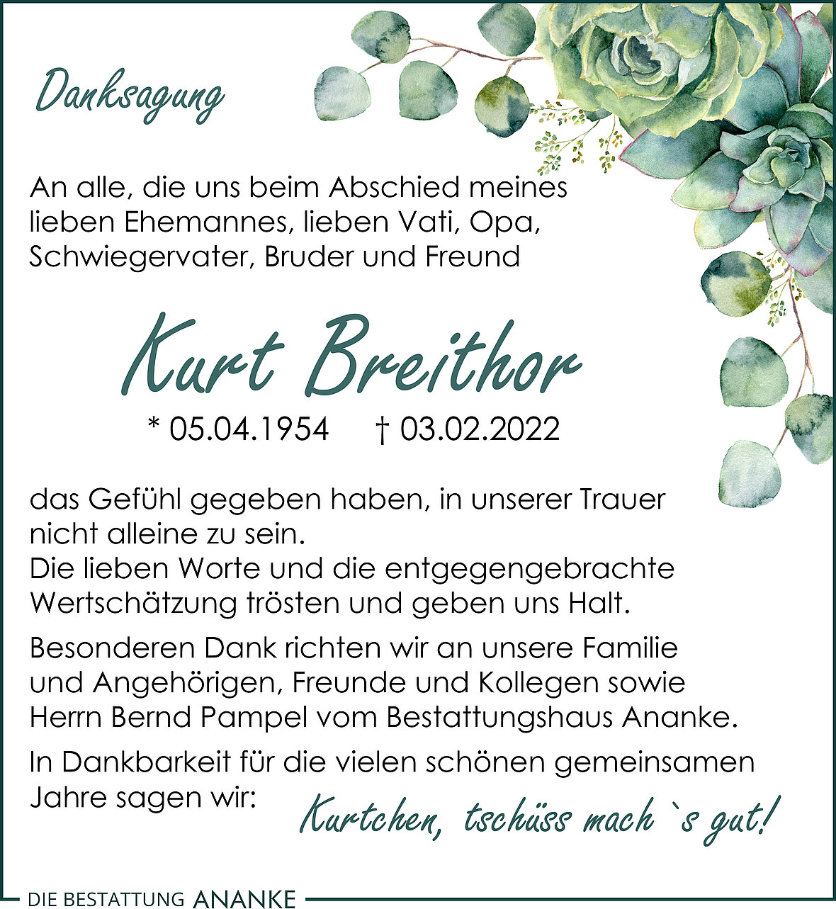 Gedenkseite - Kurt Breithor