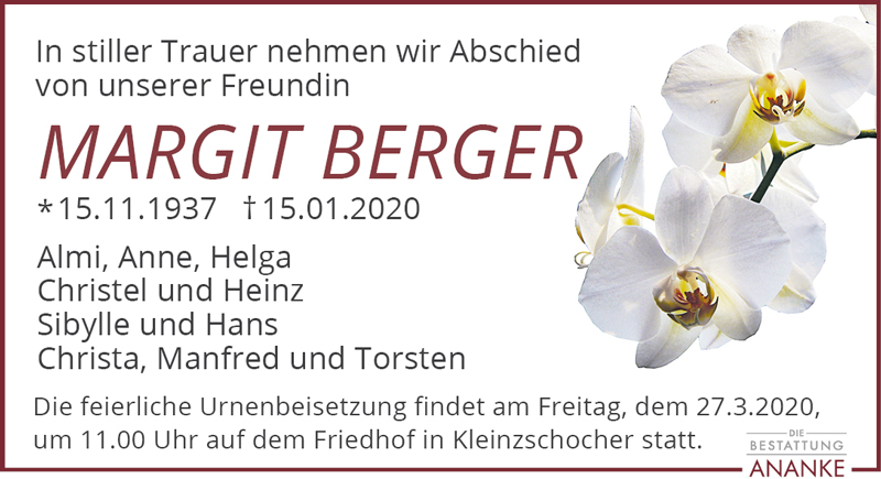Gedenkseite - Margit Berger