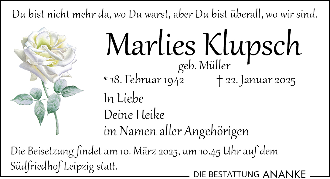 Gedenkseite - Marlies Klupsch