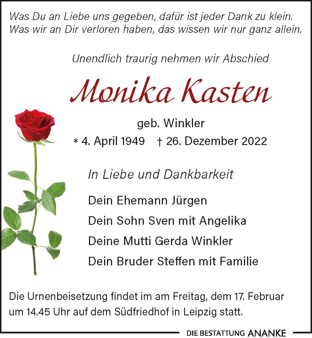 Gedenkseite - Monika Kasten