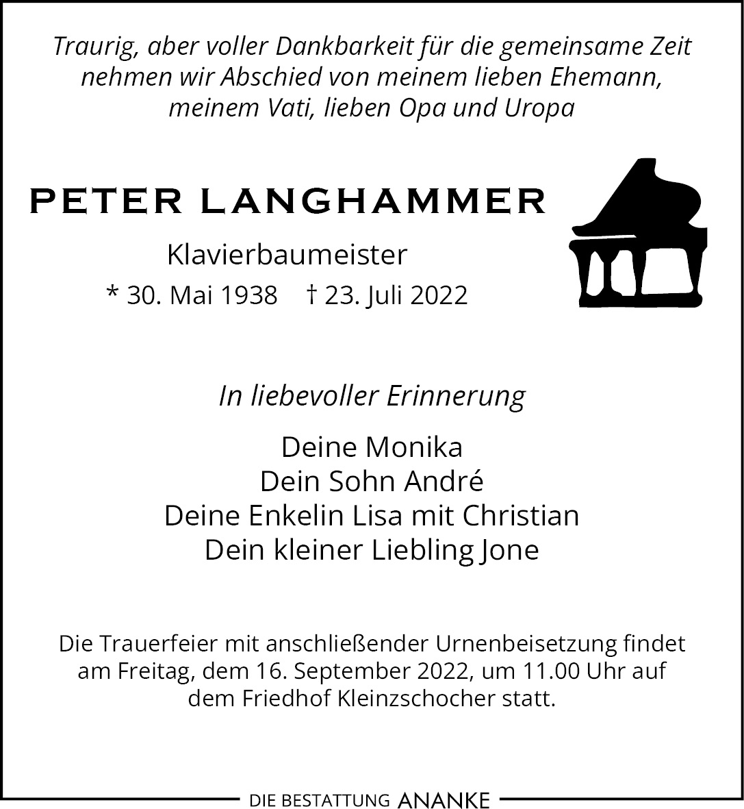 Gedenkseite - Peter Langhammer