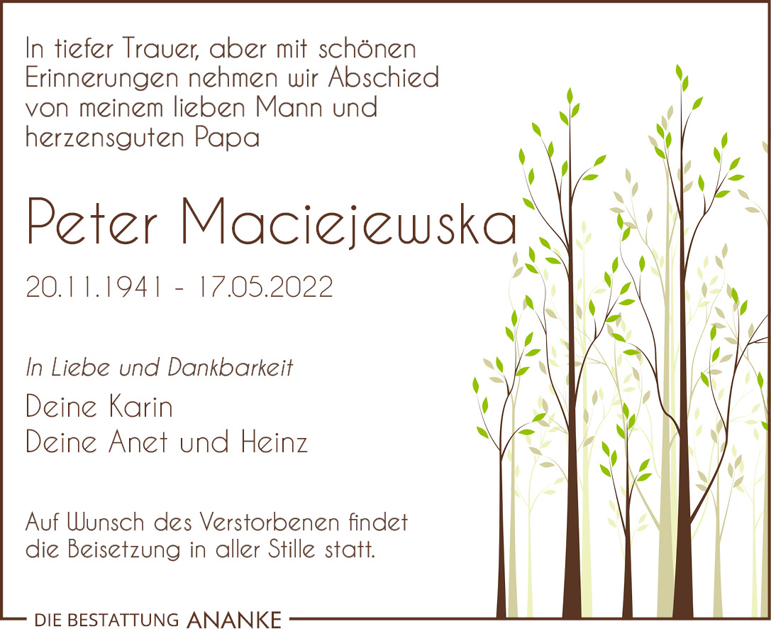 betroffen habe ich die Traueranzeige für Peter gelesen. Auf einmal waren wieder ganz viele Erinnerungen an wunderschöne Zeiten da.