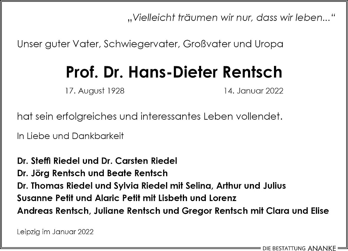 Gedenkseite - Prof. Dr. <br/> Hans-Dieter Rentsch