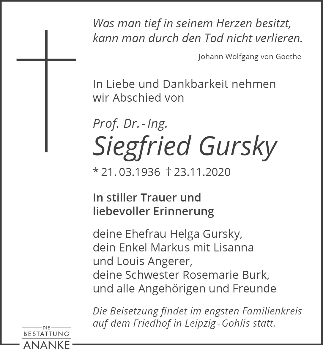 ich habe jetzt erst vom Tod von Prof. Gursky gelesen.