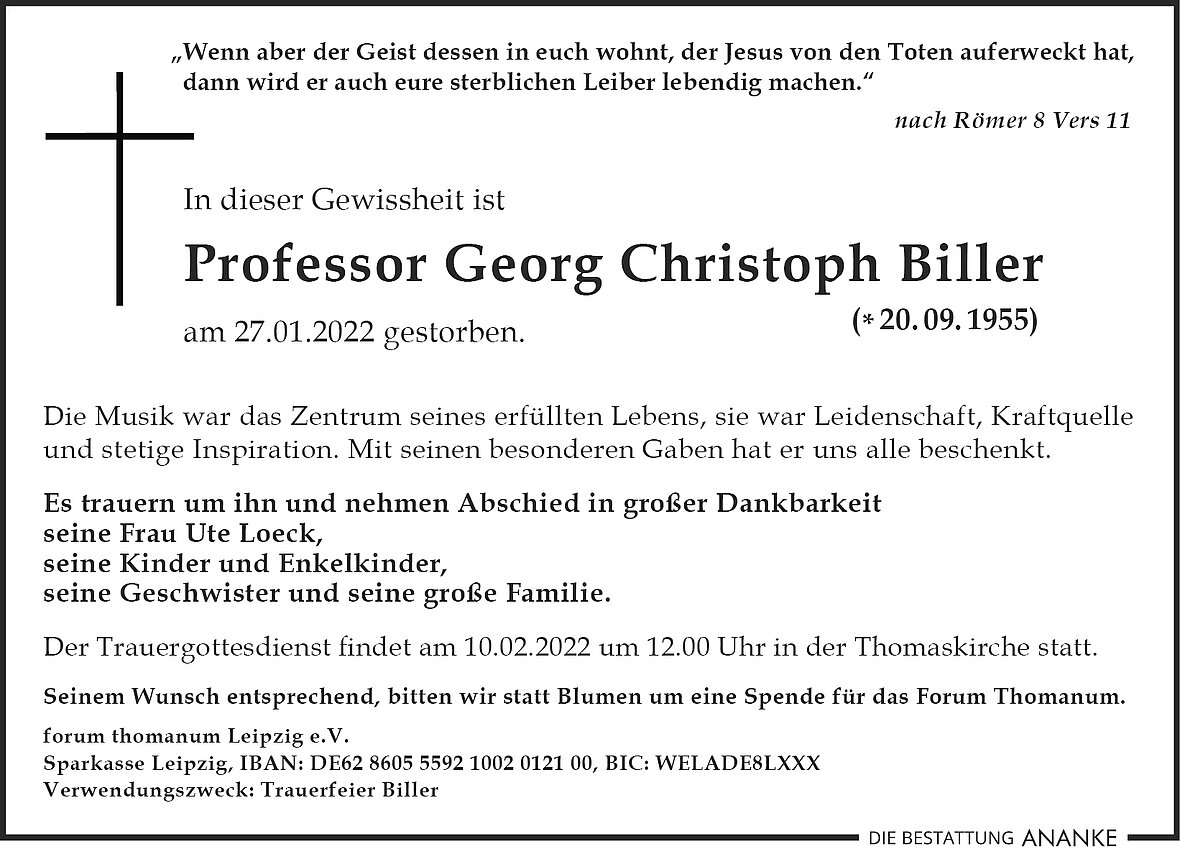 Gedenkseite - Professor <br/> Georg Christoph Biller