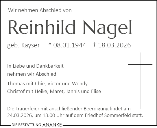 Gedenkseite - Reinhild Nagel