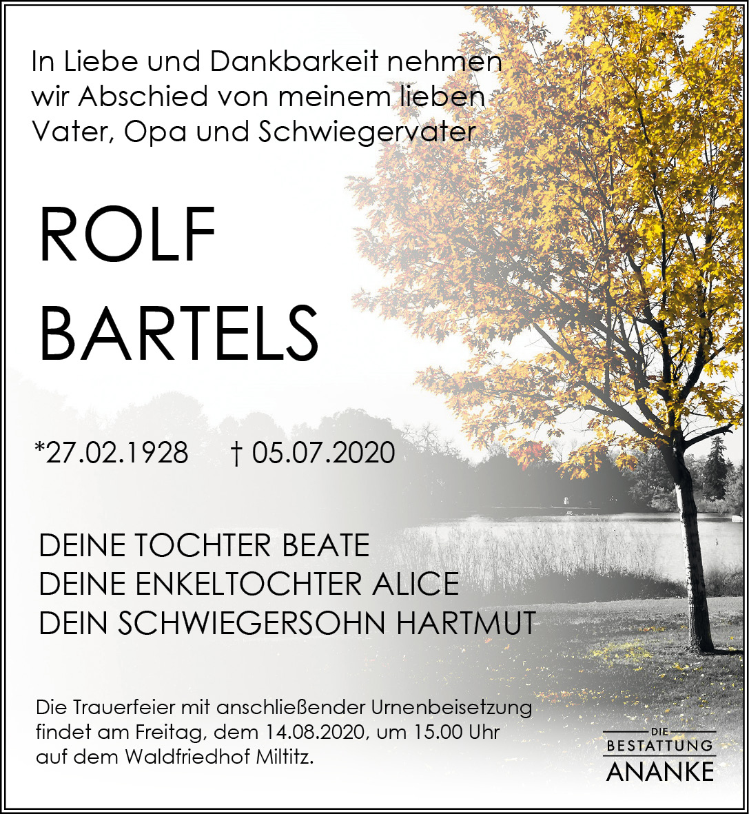 Gedenkseite - Rolf Bartels