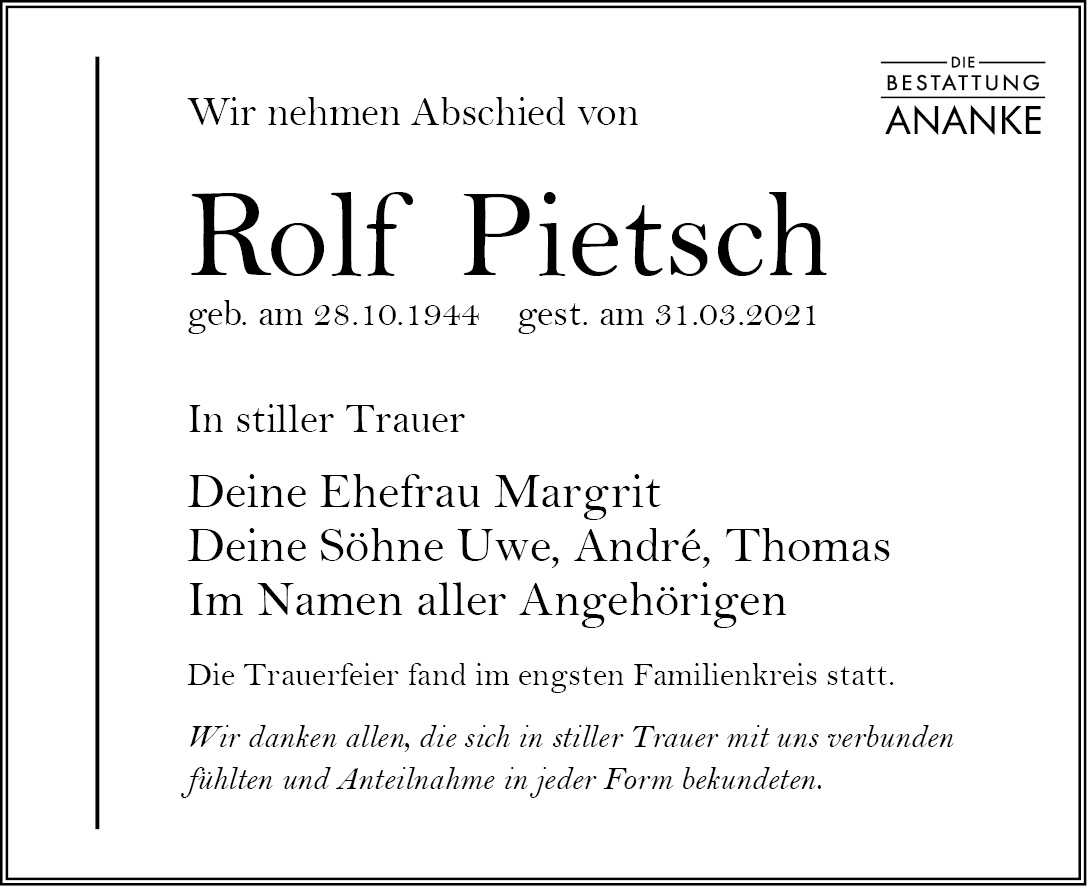 Gedenkseite - Rolf Pietsch