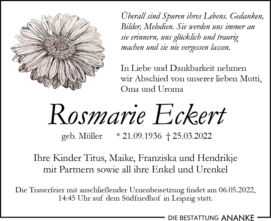 Gedenkseite - Rosmarie Eckert