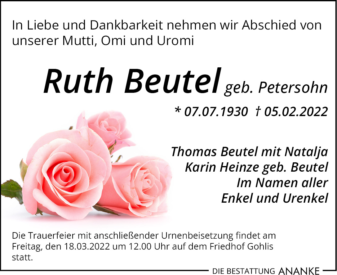 Gedenkseite - Ruth Beutel