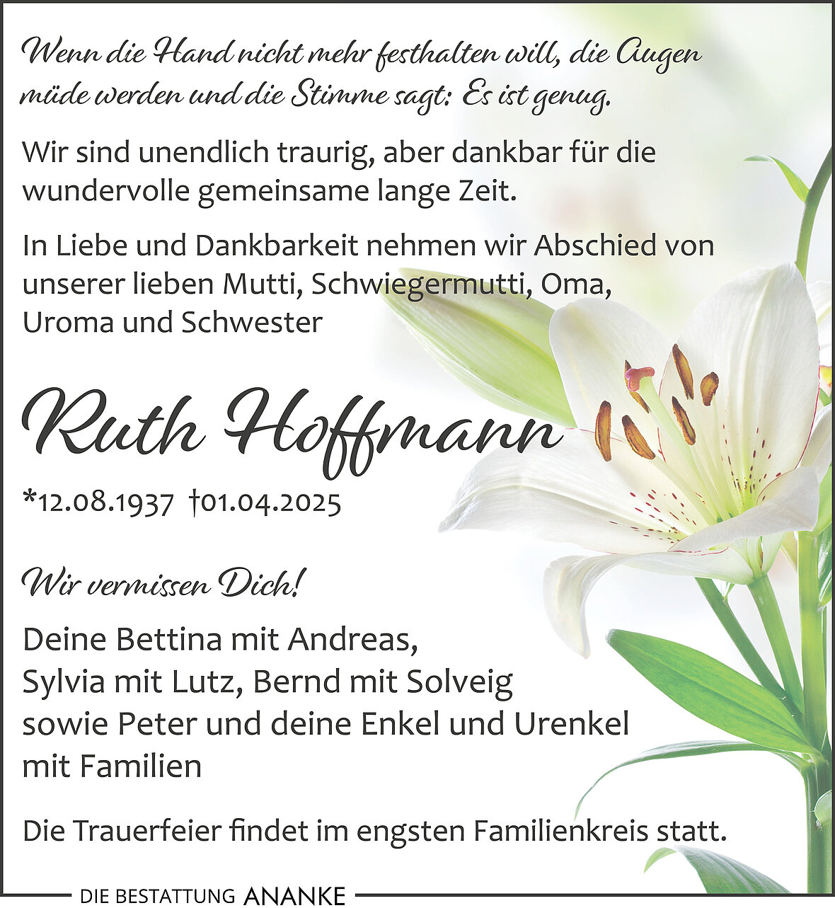 Gedenkseite - Ruth Hoffmann