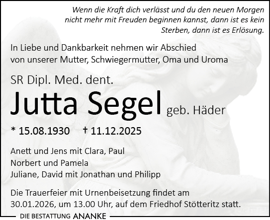 Gedenkseite - SR Dipl. Med. dent. Jutta Segel