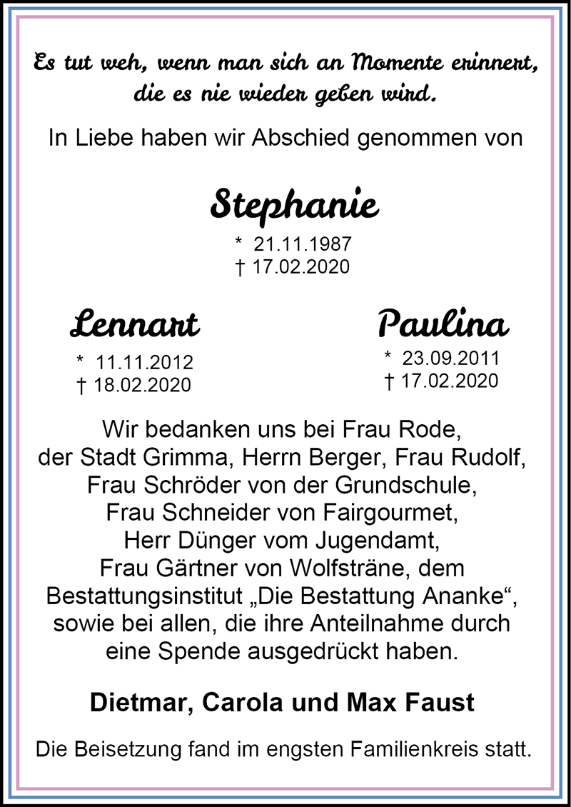 Gedenkseite - Stephanie, Paulina, Lennart Faust