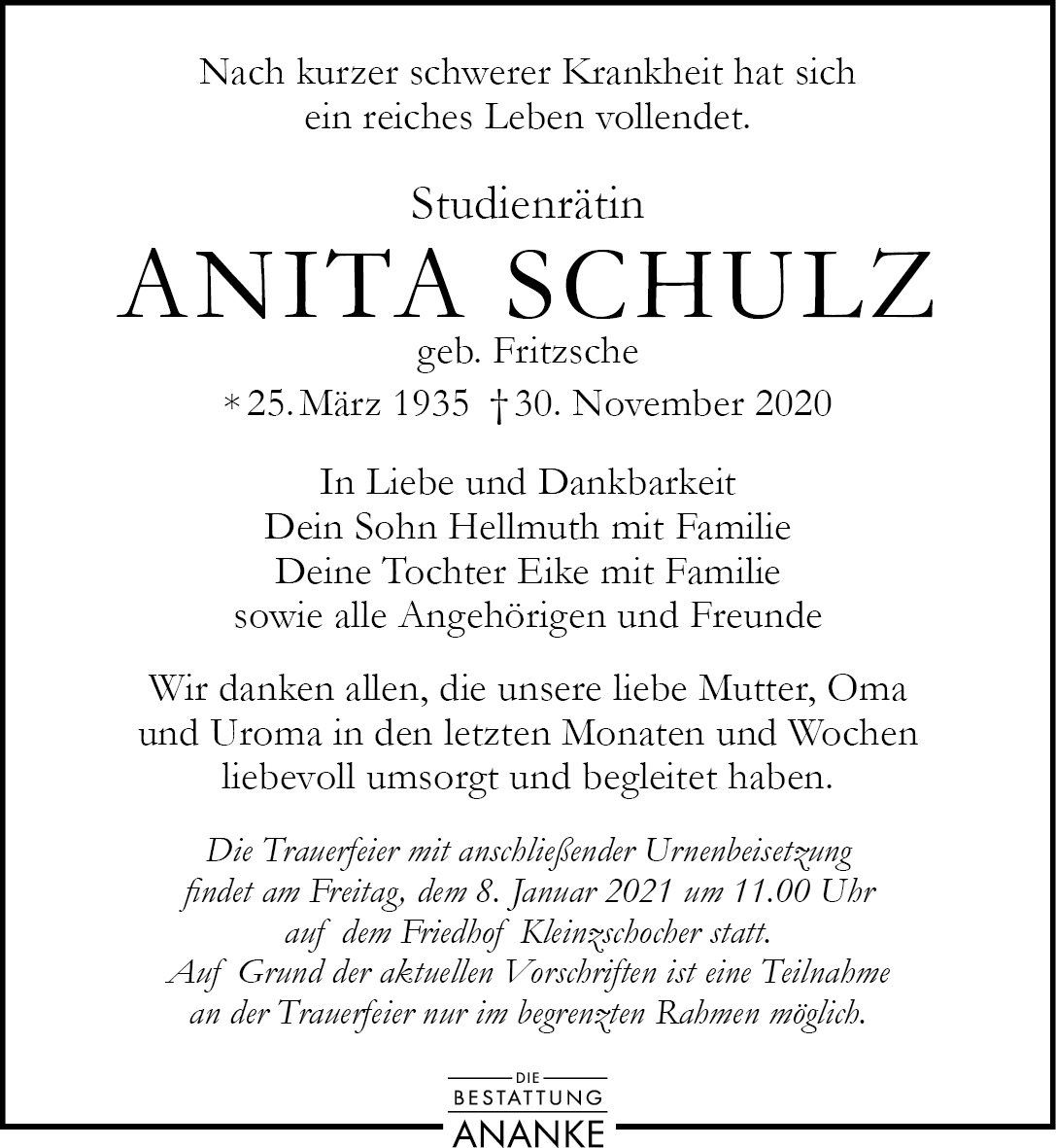 Gedenkseite - Studienrätin <br/> Anita Schulz