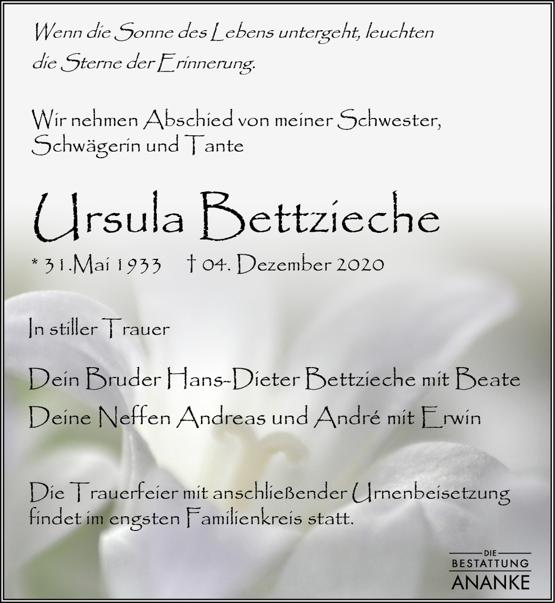 Gedenkseite - Ursula Bettzieche