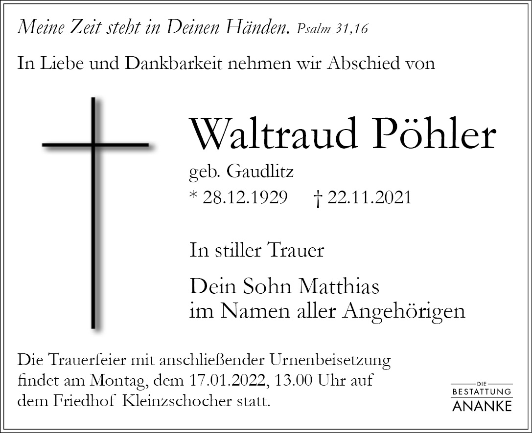 Gedenkseite - Waltraud Pöhler